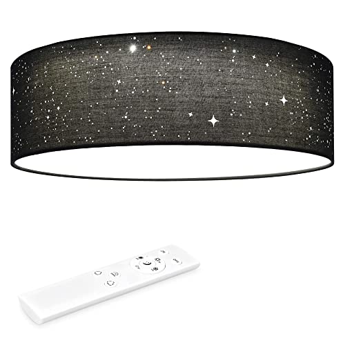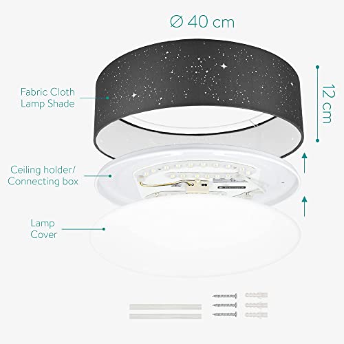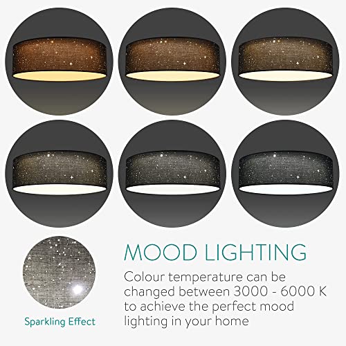 Navaris Plafoniera LED Soffitto 22W Rotonda Ø 40cm - Lampadario LED Dimmerabile - con Telecomando e Cambio Temperatura Colore - Design Effetto Stellato - Tessuto Grigio Scuro
