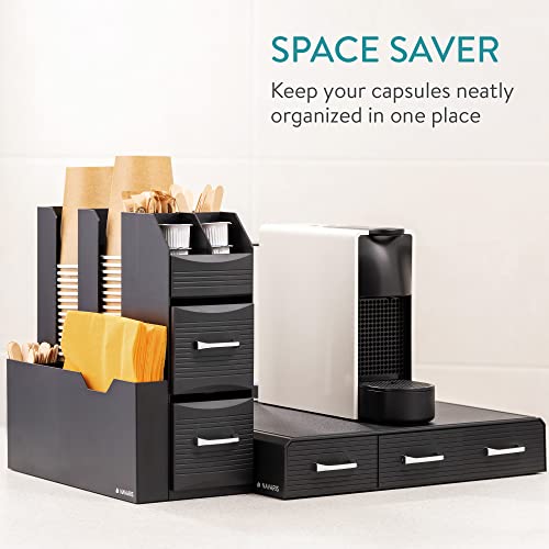 Navaris Porta Cialde - Contenitore Capsule - Cassetto sotto Macchina Caffe - Portacialde da caffè - Porta Bicchierini Zucchero e Palette - Organizer Angolo Caffe Cucina - Nero