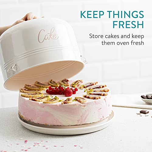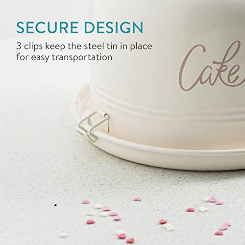 Navaris Porta Torta con Coperchio Ø 25cm - Contenitore Trasporto Torte - Tortiera Campana Dolci - Vassoio Torta Rotondo - Portatorta con Manico Crema