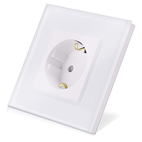 Navaris Presa Corrente Elettrica Schuko - Placca con Cornice in Vetro Bianco - Spina Prese per Parete - Scatola Incasso a Muro Placca Bianca Spina F