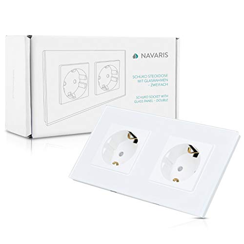 Navaris Presa di Corrente Elettrica Schuko - Placca con Cornice in Vetro Bianco x2 Prese per Parete - Scatola Incasso a Muro Placca Bianca Spina F