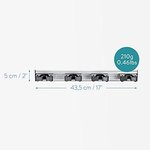 Navaris Rastrelliera Porta Scope da Muro - Portascope in Alluminio 43,5x5cm - 4x Ganci per Manico Scopa Raccogli Immondizia Mocio Spolverino Rastrello