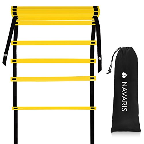 SCALA DI COORDINAZIONE: migliora coordinazione e velocità con la scala per allenamento sportivo di Navaris. I pioli, piatti e regolabili, sono di colore giallo e quindi facilmente visibili su qualsiasi superficie p.e. erba.