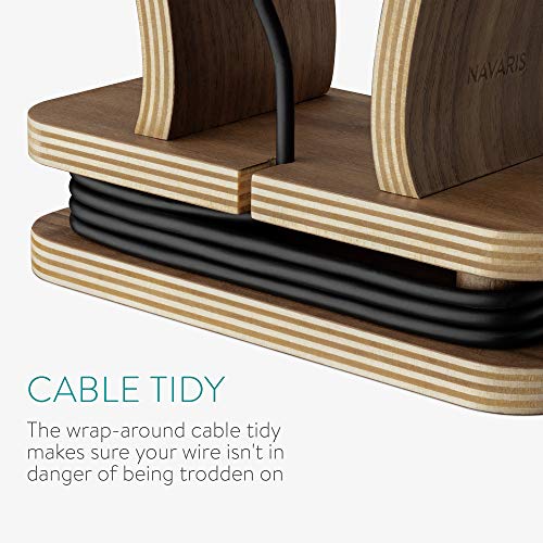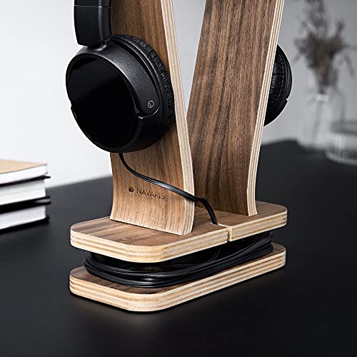 Navaris Supporto Porta Cuffie in Legno Noce - Stand Portacuffie da Tavolo con Avvolgicavo - Base Universale Headphones Cablate o Wireless 26x16x7,5cm