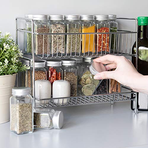 MULTIUSO: non solo come portaspezie, gli espositori a due scaffali sono versatili come cestello portamestoli o come cassetto verticale per appendere presine e altri accessori. Utile anche in bagno per sciampi, saponi e altri prodotti di bellezza.