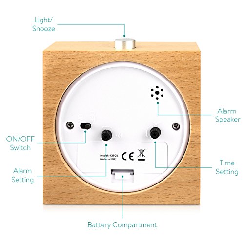 FUNZIONALE: secondi, minuti, ore - oltre alle lancette e ai numeri, la sveglia a batteria dispone di un pulsante color argento per la luce notturna e di un allarme con funzione snooze. Il suono dell'allarme è peraltro molto piacevole.