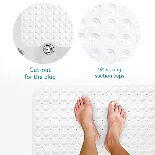 DETTAGLI: con una struttura rettangolare di 100 x 41 cm, il tappetino in PVC bianco si adatta facilmente alla maggior parte delle vasche da bagno - resta fermo e saldo alla superficie grazie alle numerose ventose.