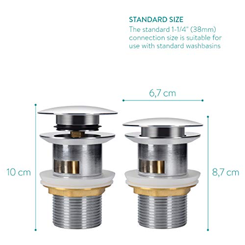 DETTAGLI: la base del tappo PopUp ha diametro standard di 38mm. La piletta pop-up misura in tot. 10x6,7x6,7cm. Il tappo per lavello ha incasso universale per i servizi idraulici più diffusi, p.e perfetto come tappo vasca da bagno.