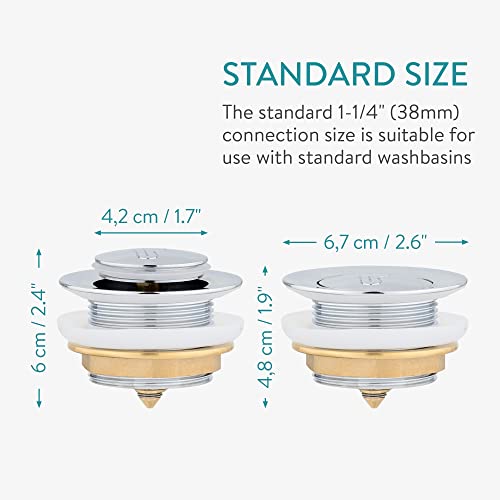 Navaris Tappo Lavandino Bagno Universale Pop Up - Saltarello Bidet Vasca - Valvola di Scarico WC Piatto Doccia - Piletta Click Clack Vasca - Design Piede Cromato