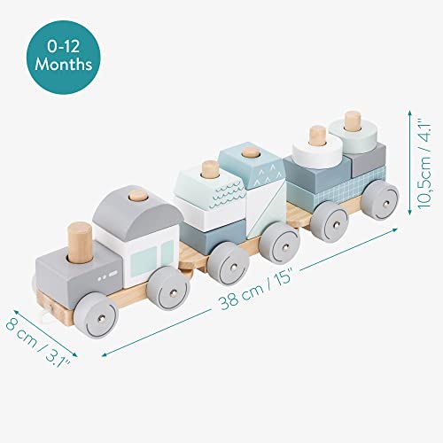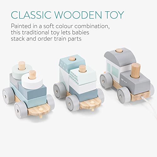 Navaris Trenino in Legno Trainabile - Locomotiva e Vagoni a Ruote Trainabili con Spago - Treno Giocattolo - Decorazione Cameretta Bambini - Grigio