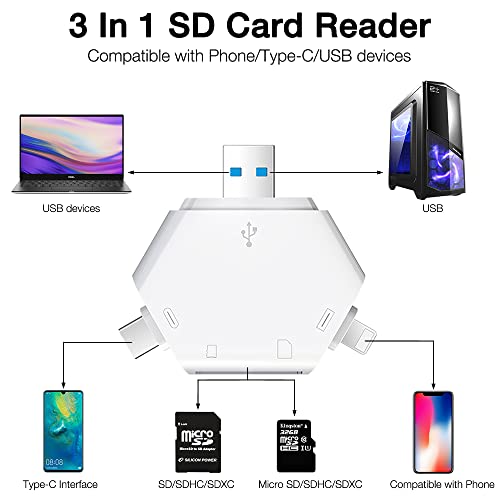 NAVESO Lettore di Schede SD, Lettore di Schede di Memoria Attrazione Magnetica, Lettore Schede di Memoria Usb, Lettore di Schede usb 3 in 1, Lettore Schede di Memoria, Adattatore per Scheda Micro SD