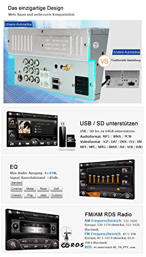 NAVISKAUTO 6.2 pollici Windows CE 6.0 Double Din Autoradio lettore DVD Player, Stereo Touch screen GPS per auto Navigation supporto ¨ ¹ Tzt Bluetooth FM AM Radio Subwoofer R ¨ ¹ ckfahrkamera esterna TV Box controllo volante