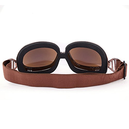Nawenson Occhiali per moto, bici, ciclismo, con montatura stile aviatore di color nero, modello vintage, Silver