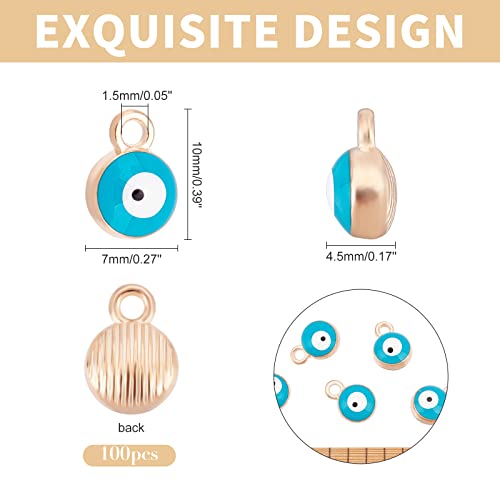 NBEADS 100pz Ciondoli Smaltati Malocchio, Piatto Rotondo con Ciondoli per Occhi Diabolici Ciondoli Smaltati In Lega Placcata Oro Chiaro per Gioielli Fai-Da-Te, Orecchini, Collana, Cielo Blu