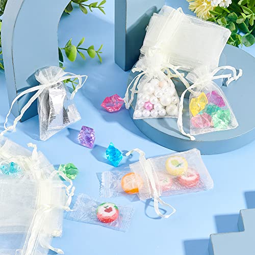NBEADS 100pz Sacchetti di Organza, 7x5cm Coriandoli Bianchi Piccoli Gioielli Sacchetti Bomboniere Regalo per Bracciale Collana Perline Portaoggetti