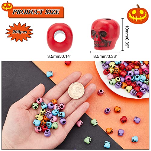 Cosa otterrai: il pacchetto include 200 pezzo di perline colorate con teschio di Halloween e la dimensione è di circa 8.5 mm di larghezza, 10 mm di lunghezza, 9 mm di spessore, Foro: 3.5 mm, la quantità sufficiente e più colori potrebbero soddisfare le diverse esigenze di artigianato.
