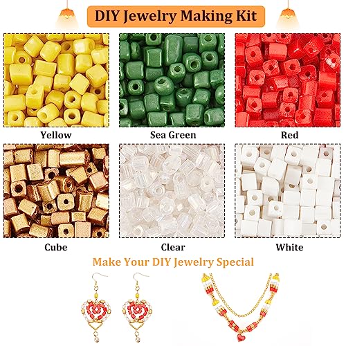NBEADS 2264 Pz 6 Colori Kit Perline, Perline di Vetro A Cubo con Aghi di Filo Elastico Kit di Piccole Perline per Braccialetti per La Creazione di Braccialetti di Gioielli Fai da Te