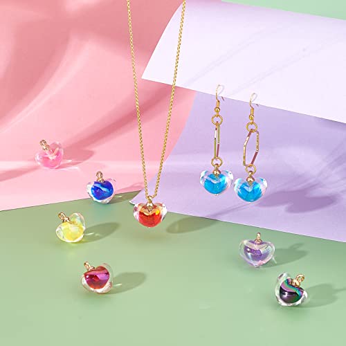NBEADS 32pz Ciondoli Colorati A Forma di Cuore D'Amore, 8 colori A Forma di Cuore Perline con Anello In Lega D'Oro Trasparente Perline In Acrilici Pendenti per Che Fanno Artigianato Decorazione Nappa