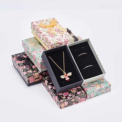 NBEADS 20 pz 8x5x2.5cm Scatole per Orecchini di Gioielli in Cartone, Set di Carta Scatole Scatole Regalo con Fiocco in Nastro e Spugna Nera per Bracciale, Collana, Orecchini Pendenti, 5 Colori