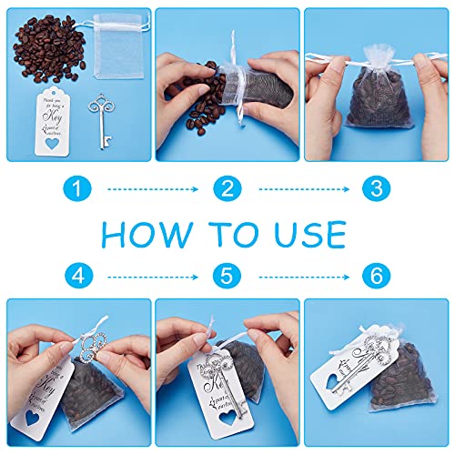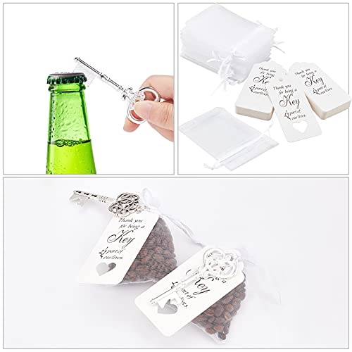 Il pacchetto include: riceverai 60 apribottiglie chiave, argento antico e argento, 60 cartoncino espositore e 60 sacchetti di organza, questo set ha una grande qualità, abbastanza per soddisfare le tue esigenze.