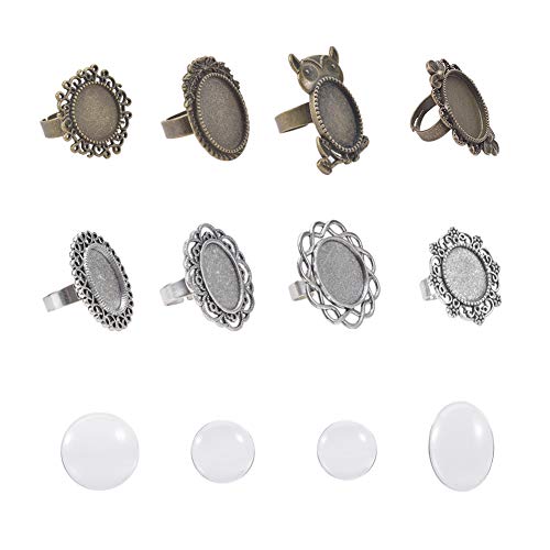 NBEADS 32 Pz Cabochon Ring Vassoi Regolabile in Ottone Pad Ring Risultati E Cabochon in Vetro