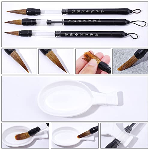 Pacchetto incluso - Riceverai 3 misura 3 pezzi di pennelli per inchiostro da scrittura cinese, Contenitori portainchiostro a forma di cucchiaio da 1 pz, 4 panno magico riutilizzabile: circa 13.5" di larghezza, 26.7" lunghezza, 0.004" di spessore. Appositamente progettato per i principianti della calligrafia cinese, non più inchiostro macchia la scrivania o le mani.