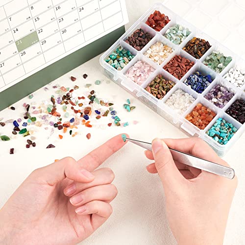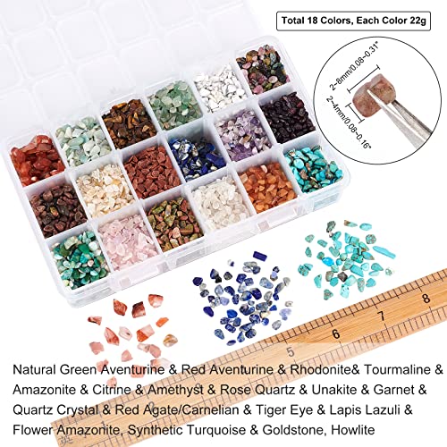 Il pacchetto include: riceverai circa 396 g di pietre preziose con chip, 18 materiale, ogni materiale di perline ha circa 22 g. Forniamo anche una scatola di immagazzinaggio, comodo da riporre.
