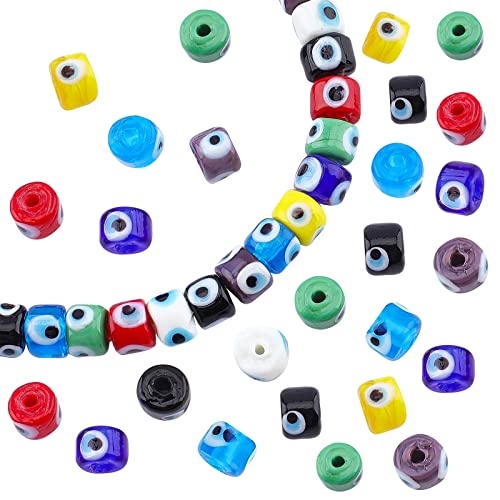 NBEADS Circa 53pz Colonna Perline Evil Eye, 8×6mm Fatti A Mano Perline di Murano Distanziatore Blu Malocchio Pendenti per La Creazione di Gioielli Fai da Te, Colore Misto
