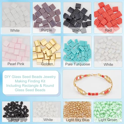 NBEADS Circa 750pz 4 Stili Perline di Semi di Vetro, 2 Stili Perle di Vetro Tila A 2 Fori, 3 Colore Ceco Perline di Semi A Due Fori e 300pz Perline di Semi Rotondi per Gioielli Orecchini Bracciale