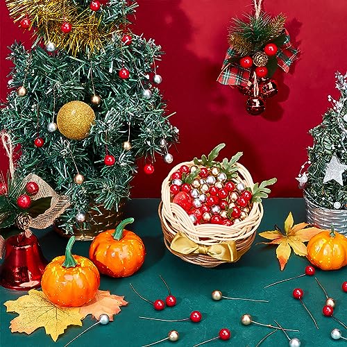 NBEADS 300 Pz 3 Colori Bacche di Natale Artificiali, Mini Decorazione di Bacche Finte su Filo di Gommapiuma Ciliegia per La Casa Ghirlanda di Fiori Uso Artigianale Fai Da Te, Rosso/Argento/Oro
