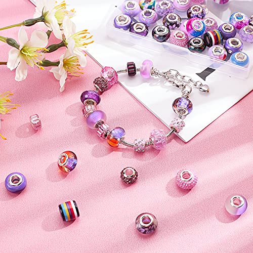 NBEADS, 54 perline europee in stile e colori misti, con diamanti sintetici, foro grande, con nucleo color argento, per fai da te, lavori artigianali, creazione di gioielli