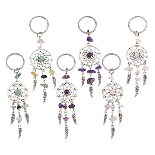 NBEADS Portachiavi Dream Catcher, 12 Pezzo 6 Stili Pendenti Dream Catcher con Chip di Pietre Preziose Naturali per Decorazioni Fai-da-Te E Creazione di Gioielli