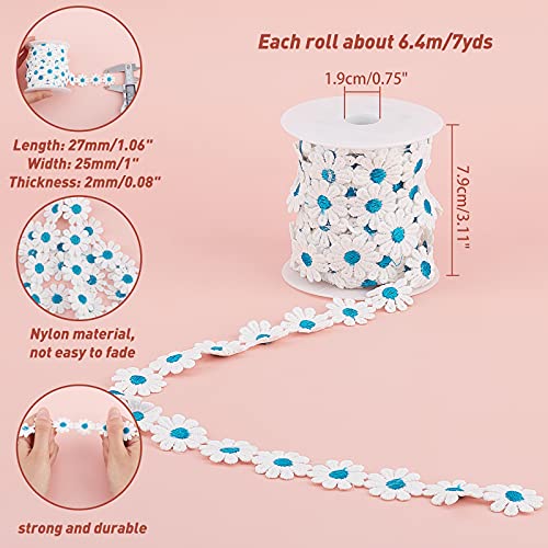 NBEADS 1 Rotolo di Nastro da 7 Iarde con Bordi in Pizzo Floreale, Appliques di Nastro Margherita in Poliestere da 25mm di Larghezza per Cucire Ricami Artigianali con Rocchetto di Plastica