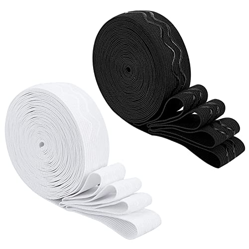 Il pacchetto include - Riceverai 1 rotolo di elastico bianco e 1 rotoli di elastico nero. Dimensioni: l'elastico elastico piatto è largo circa 25 mm, 6 yards/roll, 2 colori, 2 rotolo.