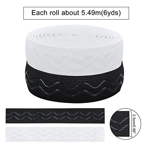 NBEADS 2 Rotolo 6 Yards/Rotolo Bianco Nero Elastici Bobina, 25mm Fasce Elastiche in Silicone Antiscivolo Piatte con Motivo A Onde Fasce Elastiche Elastiche per Progetti di Cucito di Indumenti
