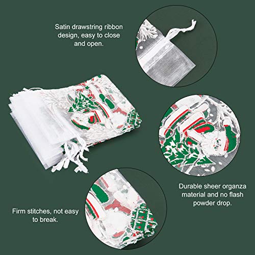 NBEADS Sacchetti di Organza Natalizi Da 50 pezzo, Sacchetti Regalo Con Coulisse In Stoffa Da 13x9 cm per Confezioni di Gioielli Al Cioccolato E Caramelle