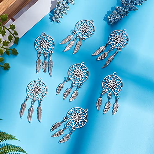 NBEADS 16 pz 4 Stili Ciondoli Acchiappasogni in Stile Tibetano, Charms Dreamcatcher con Ciondoli Grandi in Lega d'Argento Antico per Gioielli Fai-da-Te con Portachiavi, Collana, Portafogli, Appeso