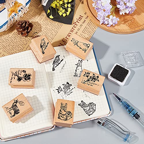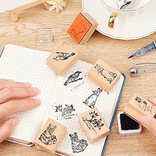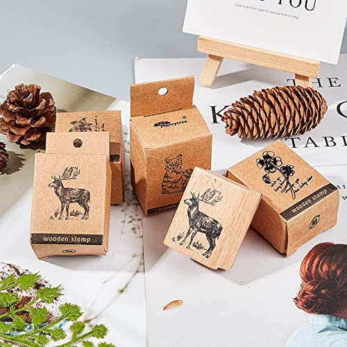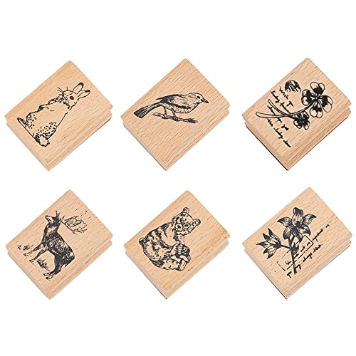NBEADS Timbri in Gomma Animali in Legno, 6 Pz Timbri in Legno con Sigillo in Gomma Modello con Coniglio Orso Uccello Fiore Scoiattolo Renna per Scrapbooking E Decorazione di Carte Fai da Te