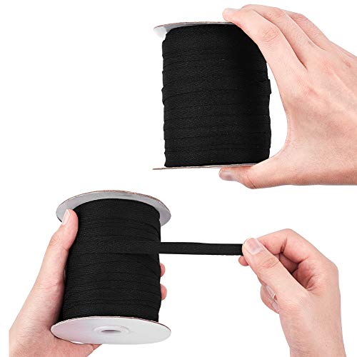NBEADS 80 yarde/Rotolo 10mm Nero Nastri di Cotone, Fettucce in Cotone A Spina di Pesce Corde Piatte in Cotone A Spina di Pesce per Cucito A Maglia