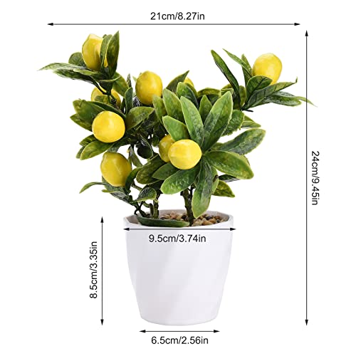 NBKKSW Confezione da 2 piante artificiali di limone, piante artificiali in vaso con fiori finti di limone giallo, bonsai in plastica, per casa, soggiorno, sala da pranzo, bagno, decorazione
