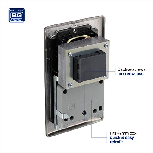 BG NBS20G presa per rasoio, 115/240 V, Doppio voltaggio, in acciaio spazzolato, nero, NBN20B-01