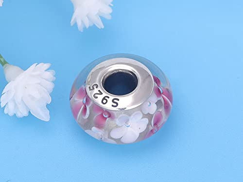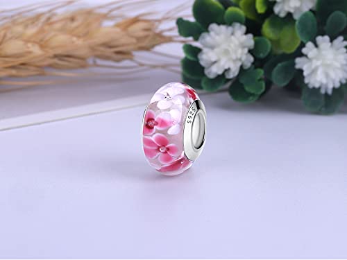 Nbsameng Charm Glitter in Vetro di Murano, Ciondolo per Braccialetti e Catenine per Donna, Ciondoli in Argento 925%,Rosa chiaro