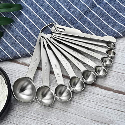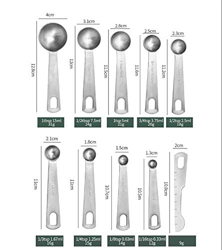 Ncheli 10 Pezzi Cucchiai Dosatori,acciaio inossidabile Measuring Spoons Set Contiene misurino e righello,per Misurazione a Secco e Ingredienti Liquidi