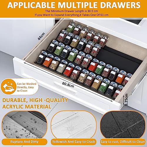 NCKIHRKK 6+2 Pezzi Portaspezie Cassetto, Portaspezie Salvaspazio, Divisori per Cassetti Cucina, Portaspezie per Cassetti Regolabili in Larghezza da 30,4 cm a 60,8 cm, Nero