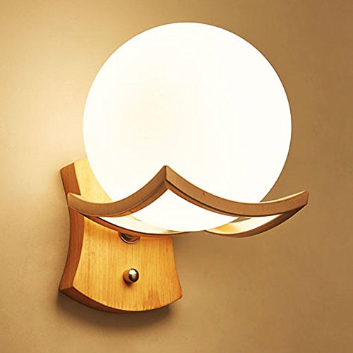 Nclon Moderno Legno massello Applique da parete,E27 Portalampada Oak Semplice Personalità Luci da muro Camera da letto Salotto Veranda Lampada Luce Lampadina non inclusa-16 * 16cm