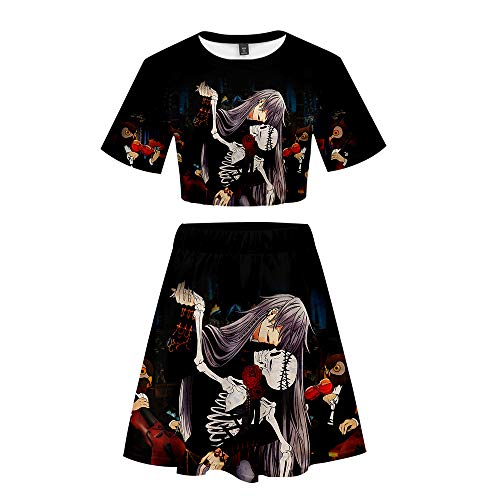 NCTCITY Black Butler T-Shirt Crop Top & Gonne Set 3D Stampato Estate Animazione Cosplay Maglietta Manica Corte Top e Svasata Gonna da Pattinatrice Sebastian Shire per Donne