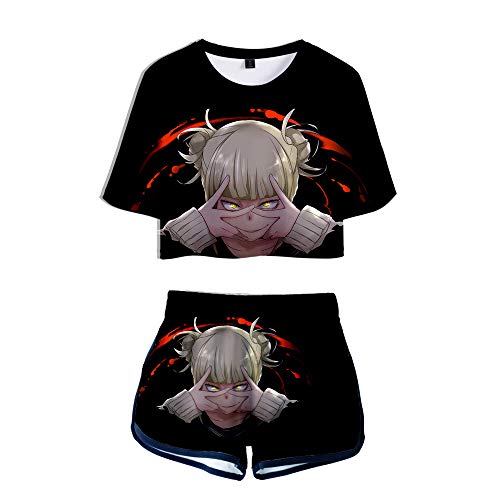 NCTCITY My Hero Academia Set Crop Top & Pantaloncini Girocollo T-Shirt 3D Stampato Maglietta Estate Camicia Manica Corte e Pantaloncini Breathable per Donne Deku Midoriya Izuku Todoroki Shouto