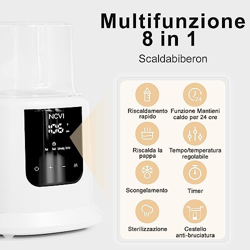 NCVI Scaldabiberon, Riscaldamento Rapido, Scongelamento e Mantieni Caldo, Sterilizzatore a Vapore, Timer, Controllo Temp, Spegnimento Automatico, BPA-FREE, Per Latte Materno e Pappe