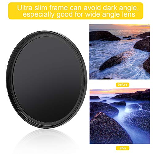 ND1000 Lens Filter, 49mm / 52mm / 55mm / 58mm / 62mm / 67mm / 72mm / 77mm / 82mm Slim Optical Glass Multiple Coated Neutral Density ND1000 Filtro ND per DSLR Ideale per obiettivi grandangolari(58mm)