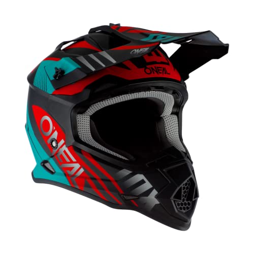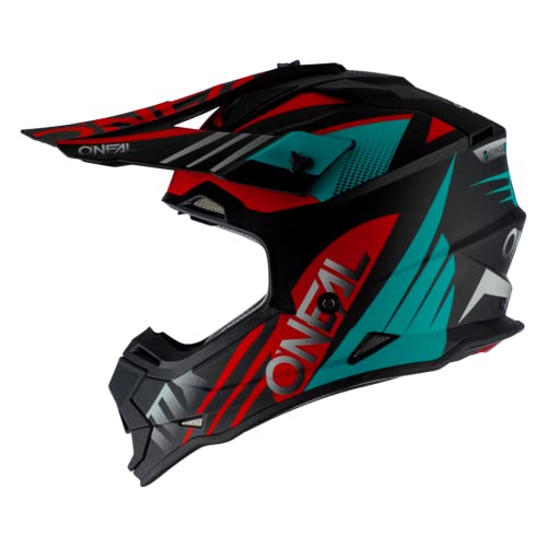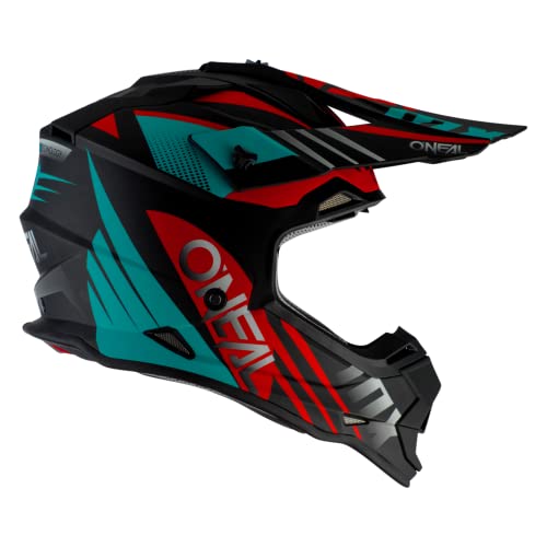 O'NEAL | Casco Motocross | MX | Calotta in ABS, Standard di sicurezza ECE 22.05, Prese d'aria per una ventilazione ottimali | Casco 2SRS Spyde 2.0 | Adulto | Nero Turchese Rosso | Taglia L